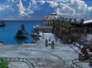 We arrive safely back at the home port. Seifer is greeted by Thing 1 and Thing 2 like loyal puppies. He struts off with his cronies in tow, and Quistis congratulates us and says we’re free until sundown. Then, Seifer drives off with our Crazy Taxi! Looks like we’re hoofin’ it home.