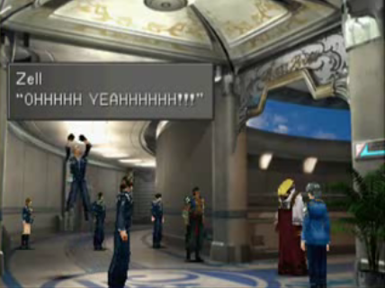 Zell literally high-knees it outta there. Then the creepy SeeD representative in the yellow hat asks Squall to step forward. The rest of the candidates are dismissed. Looks like they all failed! In all, only four people passed: Zell, Selphie, some random guy, and Squall. But that doesn’t matter, what matters is how I did! SeeD reports are distributed. I make sure to talk to the headmaster to get the Battle Meter. I hate missable items so I got a list of them before I started to make sure I miss as little of the game as I can.