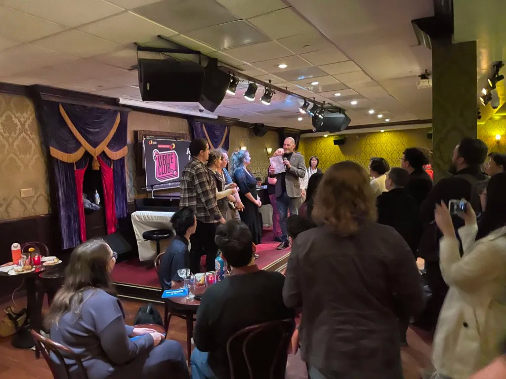 The second event was the biggest, our annual Write Club competition. Due to various circumstances, we moved from our historic venue at the Golden Gate Taproom to a new location, Johnny Foley’s Irish House. It was, for the most part, a great event – we had to turn numerous people away at the door because we hit capacity. Write Club is a SIG tradition started by Richard Dansky, where contestants are given a short period to write answers to ridiculous game-related scenarios. One of my favorite prompts this year involved writing a description for a single room in the smash-hit children’s puzzle game, Bluey Prince.