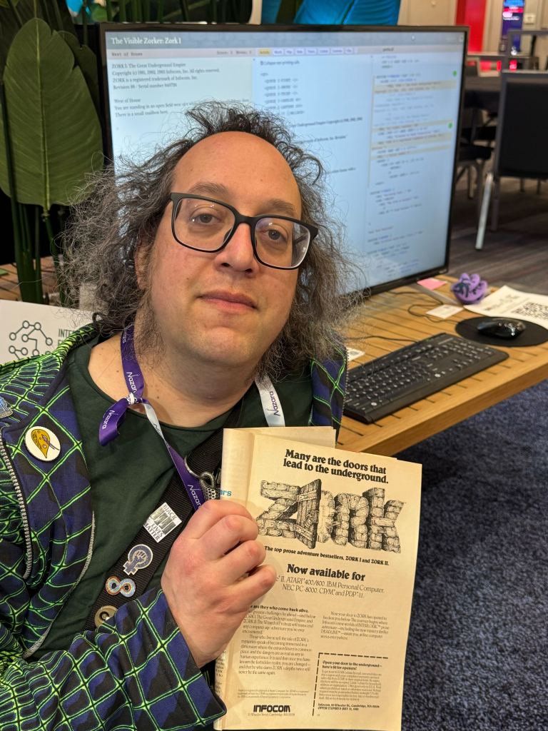 The third table displayed Andrew Plotkin’s Visible Zorker, which allowed attendees to play Zork, Zork II, and Zork III with the ability to watch the game code load and execute in real-time, as well as providing information on state, variables, tracked timers, a map, and more. Andrew has his own write-up about the Zorker at GDC on his blog, so please feel free to check it out for full details.